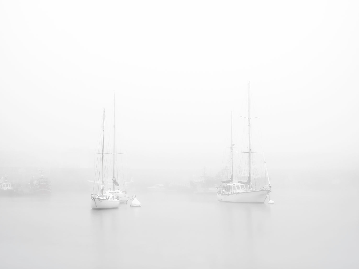 Plongez dans l’atmosphère douce et silencieuse d’un matin au port avec Voiliers dans la Brume, une photographie fine art qui capture la poésie des instants suspendus. Les silhouettes des bateaux émergent délicatement du brouillard, créant une scène apaisante, minimaliste et profondément contemplative.